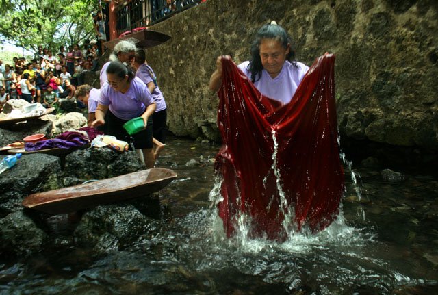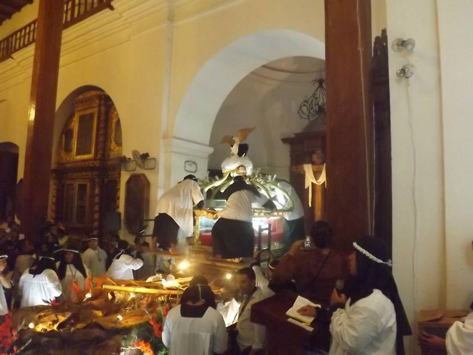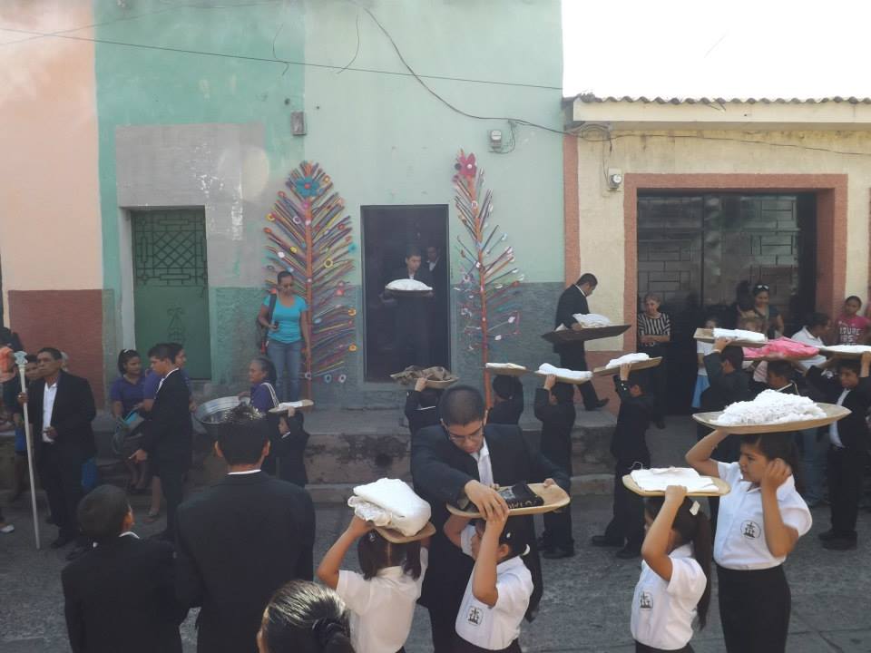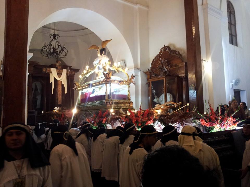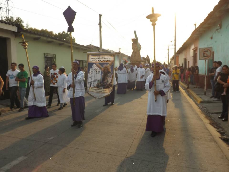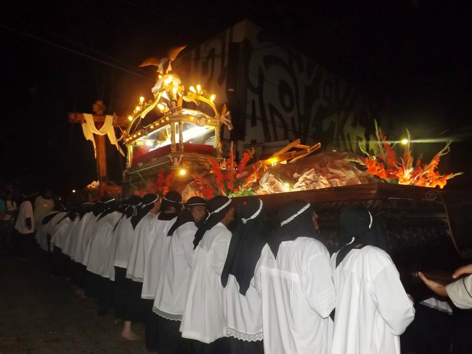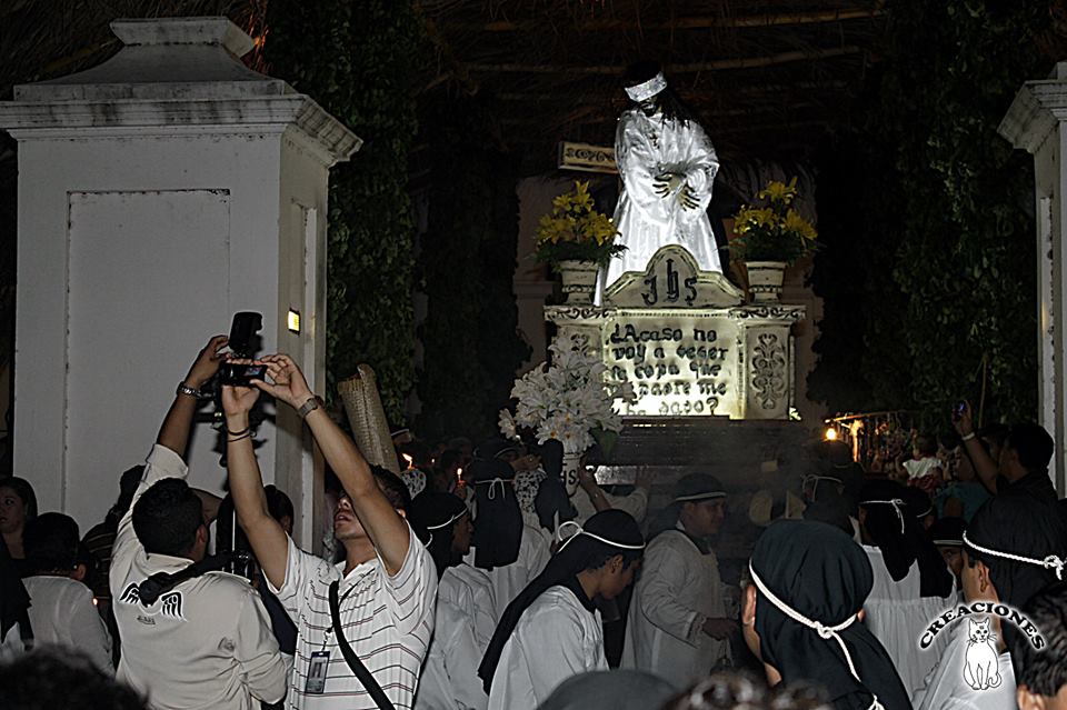 Procesión “Lavada de la ropa del Señor”. En la mañana, la procesión inicia en la Iglesia de Santiago Apóstol, con dos filas de 26 hombres usando saco de color negro. Una banda de músicos acompaña a la procesión en todo el recorrido. Se dirigen hacia la Cofradía de la Cruz, donde están las bateas de madera conteniendo la ropa sucia del Señor, los 4 huacales, la olla conteniendo el dulce de chilacayote y a Cristo crucificado. La procesión continúa hacia El Trapiche, en donde se encuentran las mujeres que lavarán la ropa.