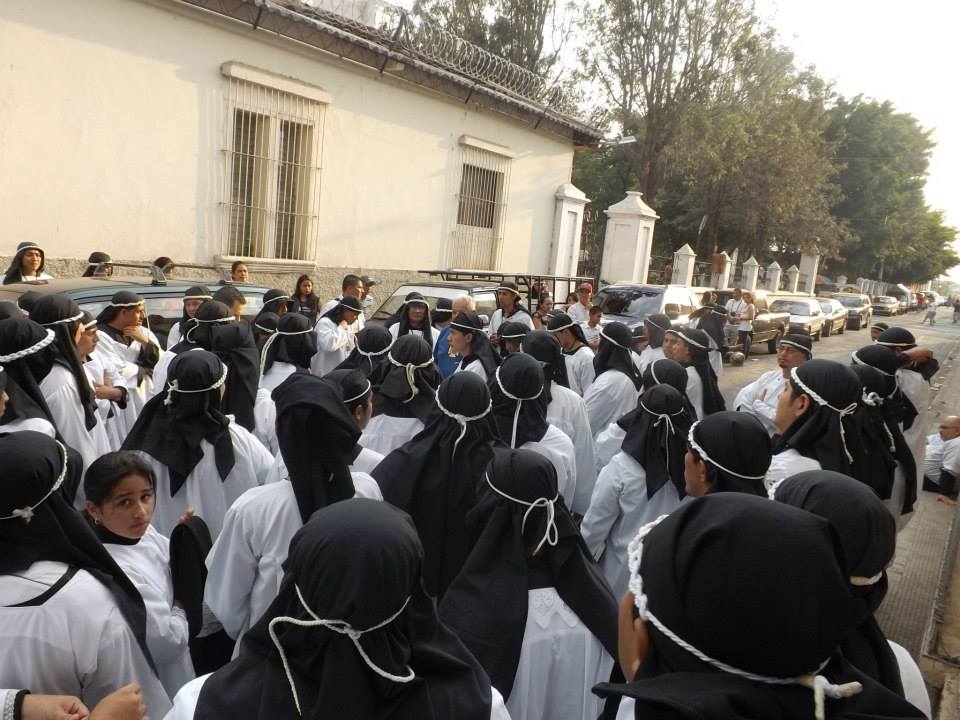 MIEMBROS DE LA COFRADÍA DE DOLORES ANTES DE SALIR A LOS TRADICIONALES ENCUENTROS