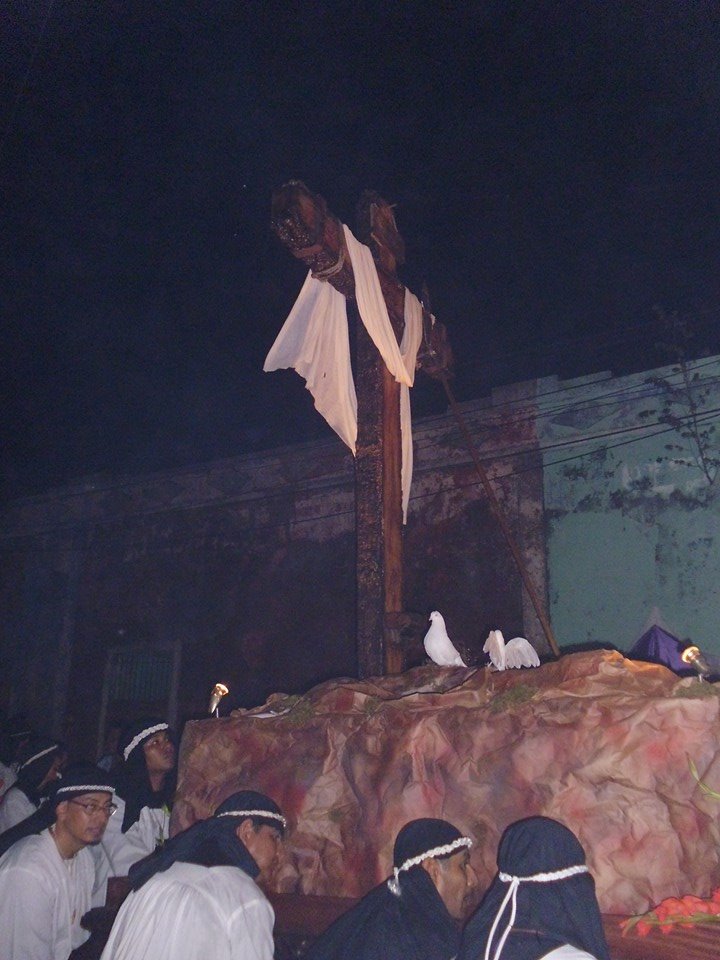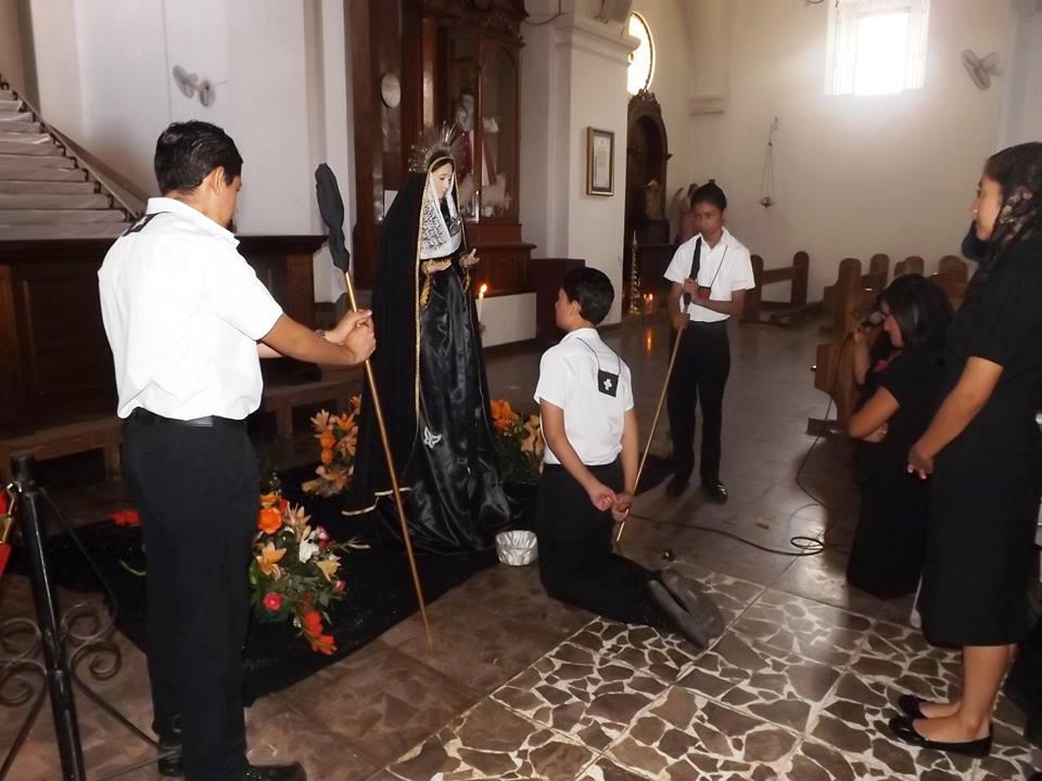 Luego, atrás de ésta viene la cofradía de Dolores, con mujeres cargadoras que llevan las imágenes de la Virgen de Dolores, a María Magdalena y a San Juan. La procesión culmina en la madrugada con la entrada en la Iglesia Santiago Apóstol.
